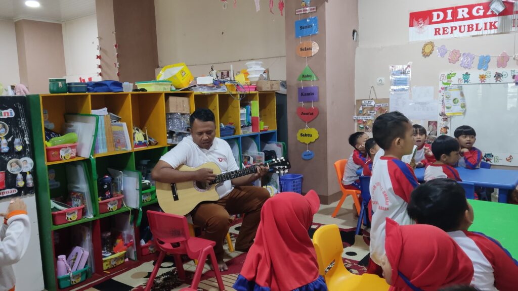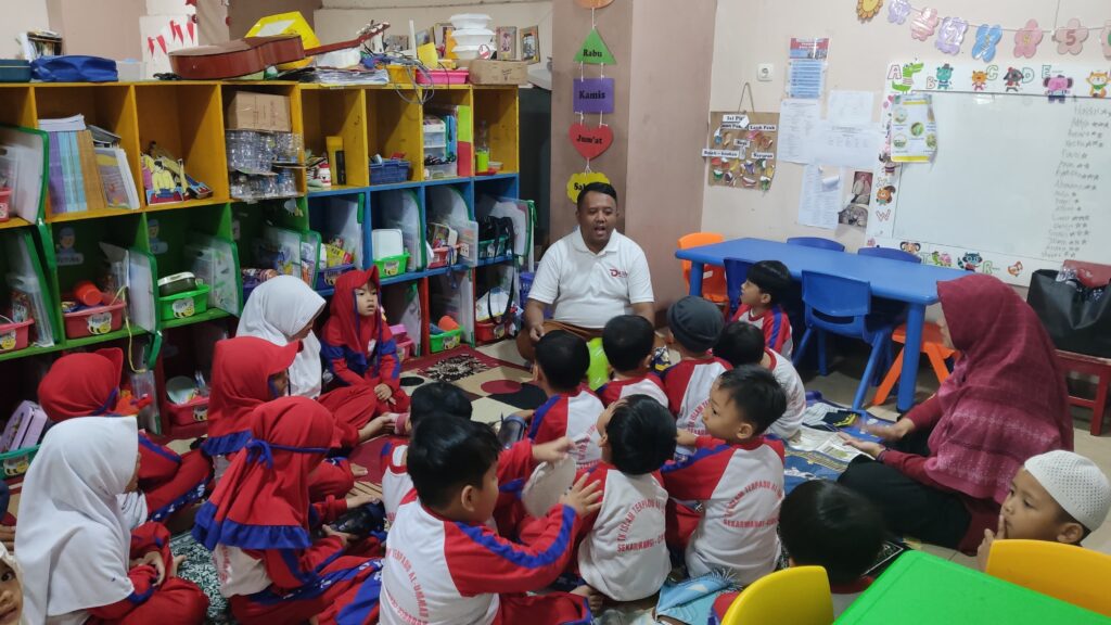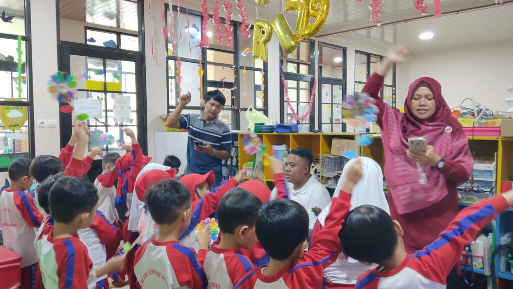Alhamdulillah pada kesempatan ini, anak-anak TK B Kelompok Yaman mendapatkan pengalaman berbeda saat dua orang ayah hadir di kelas mereka untuk mengajar. Kegiatan ini bertujuan untuk memberikan kesempatan bagi para ayah untuk terlibat langsung dalam proses belajar mengajar, sekaligus merupakan bagian dari rangkaian kegiatan P5 yaitu kolaborasi dalam sebuah proyek pembelajaran yang menyenangkan dan edukatif.